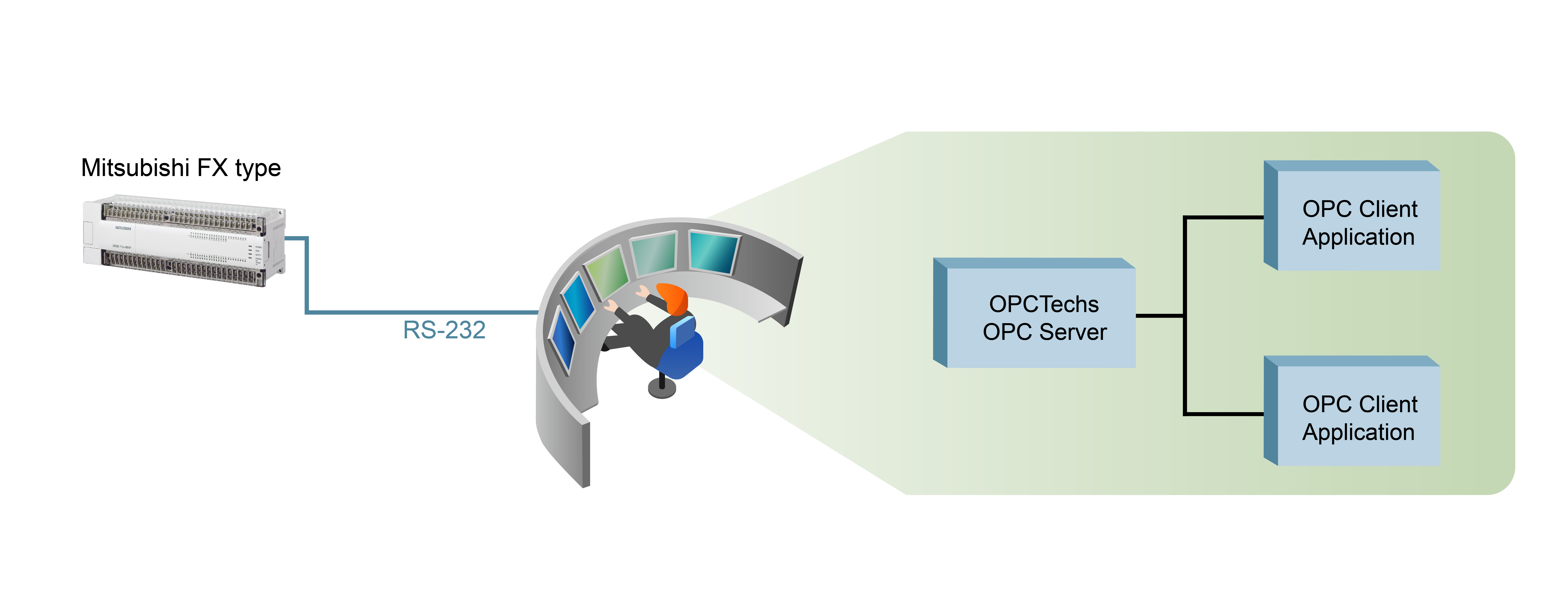 Mitsubishi Melsec OPC Server 320 is a software package developed by OPCTechs Technology Corp. for the Mitsubishi all series of PLC in serial communication. It is totally based on OPC 3.0 standards, and is suitable for the software integration domain. Melsec FX、Melsec A、Melsec Q is the protocol presented by Mitsubishi Corp. OPCTechs OPC server could connect with all series of the Mitsubishi PLC in serial communication.